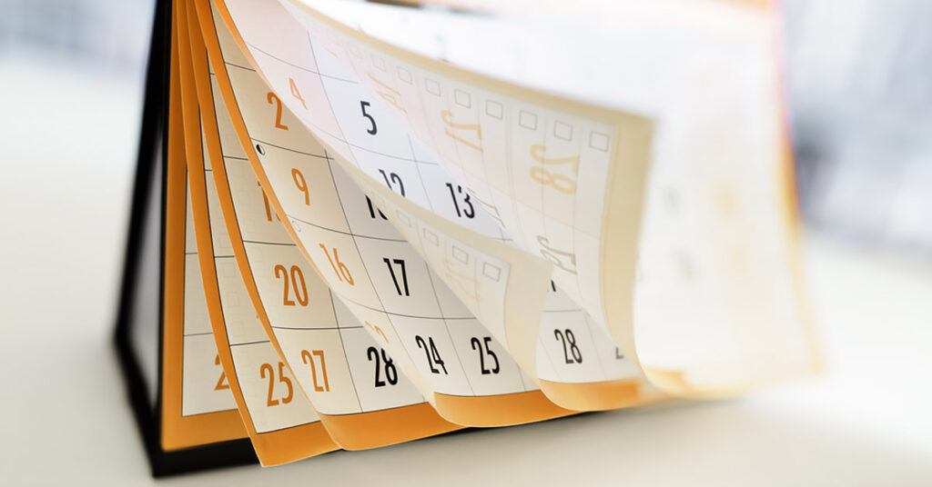 Det finns inga fasta perioder för brutna räkenskapsår. Ett brutet räkenskapsår ska omfatta 12 kalendermånader, t ex 1 oktober till 30 september.