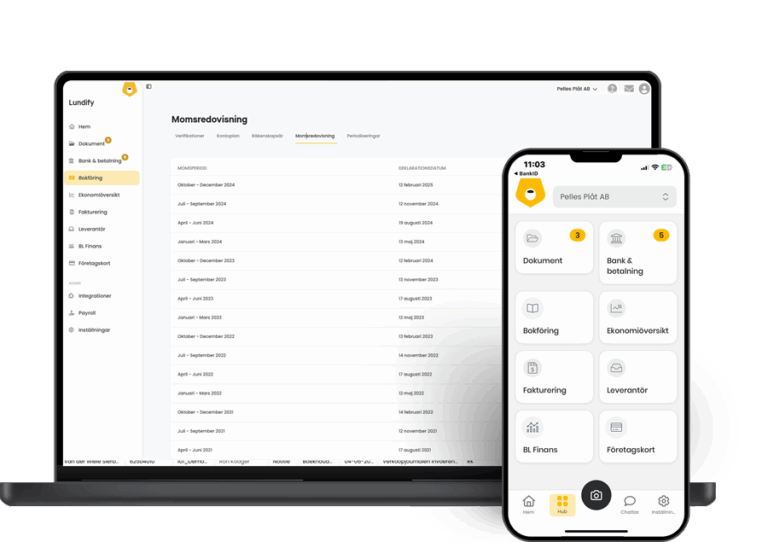 I vårt kompletta bokföringsprogram Lundify hämtas uppgifter från bokföringen automatiskt till en momsguide som ser till att momsdeklarationen blir rätt. I momsrapporten ser du hur momsen är bokförd och eventuellt felbokad moms. Momskontrollen visar exakt vilka verifikationer som har felaktigt bokförd moms och bokför omföringen av moms automatiskt.