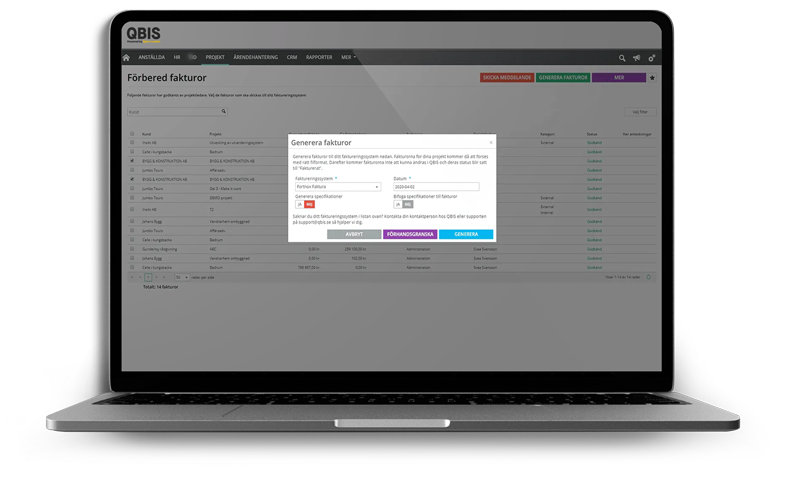 När fakturorna är attesterade kan administratören plocka ur fakturaunderlaget ur QBIS och importera det till faktureringsprogrammet. All information finns med i underlaget och med en enkel import finns all information på rätt plats för att göra faktureringen så smidig som möjligt.
